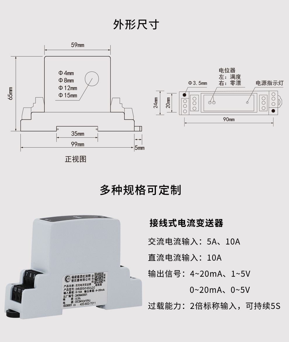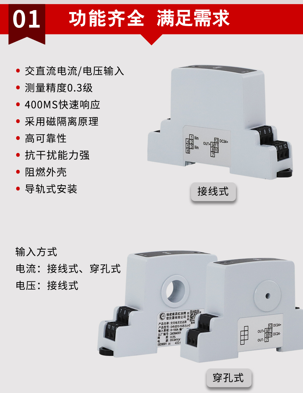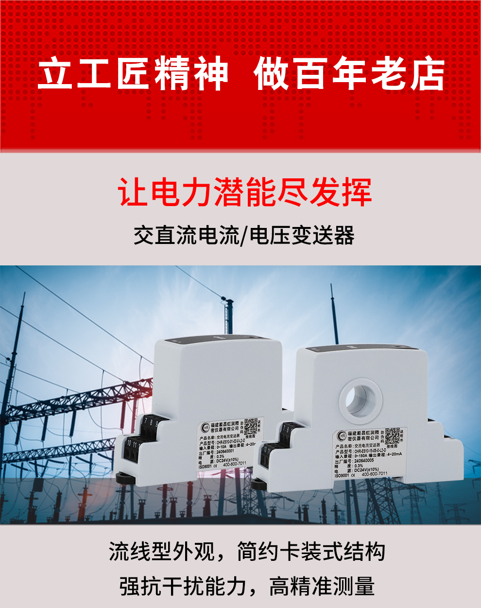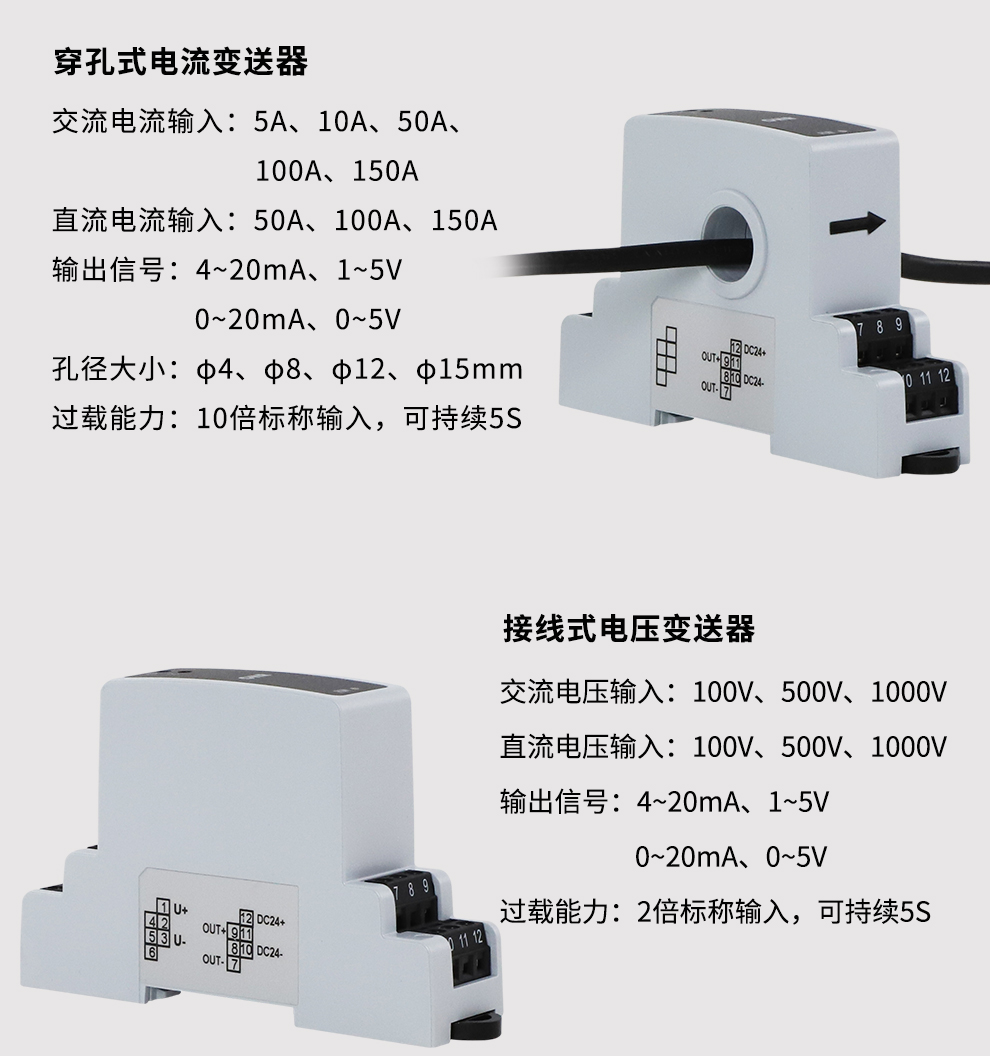 • 電流變送器/電壓變送器流線型外觀,簡約卡裝式結構,強抗干擾能力,高精準測量