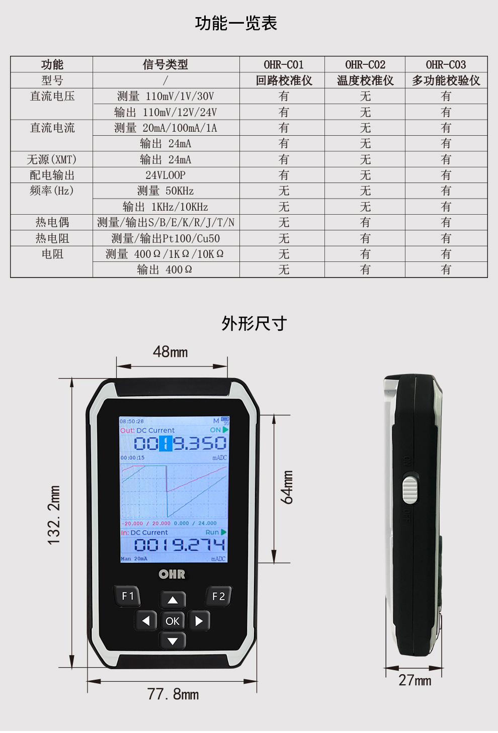 OHR-C00多功能校驗儀/信號發生器是帶測量與輸出的過程信號校驗儀。產品具有高精度、信號任意切換、續航能力強、大彩屏占比、小巧可裝口袋等特點,產品功能設置簡單易用,為使用者帶來了更便捷的體驗。
