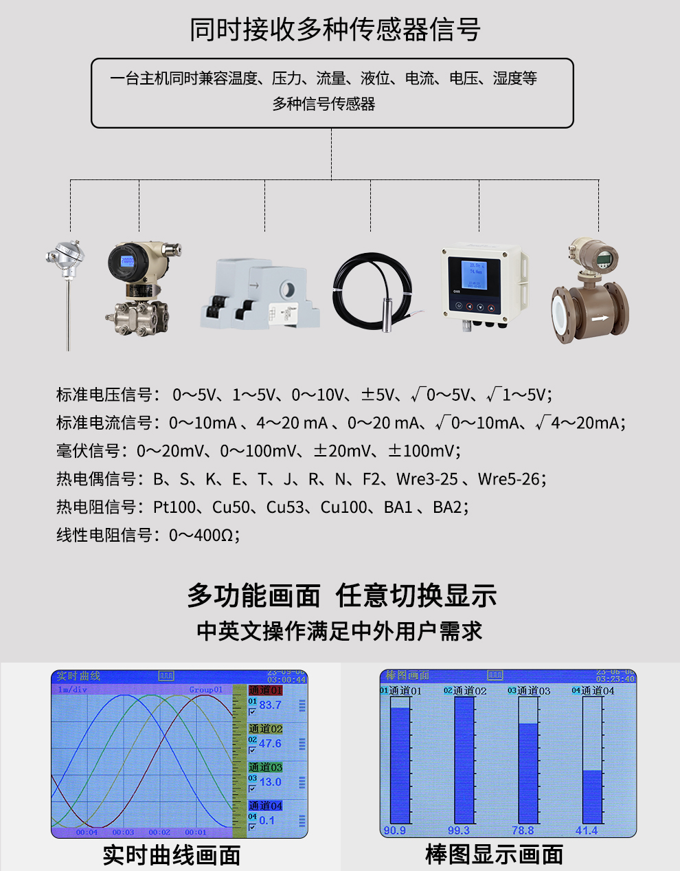 大屏高清彩顯,八路全切換信號輸入,通道相互隔離,以太網/RS485通訊