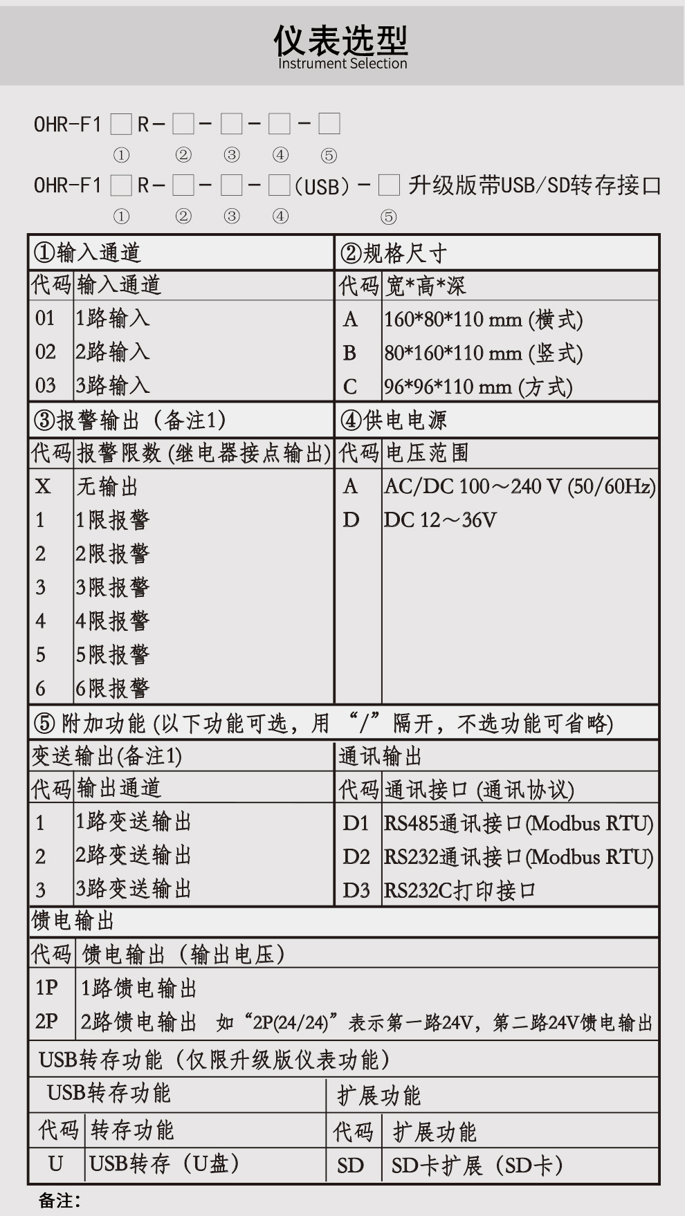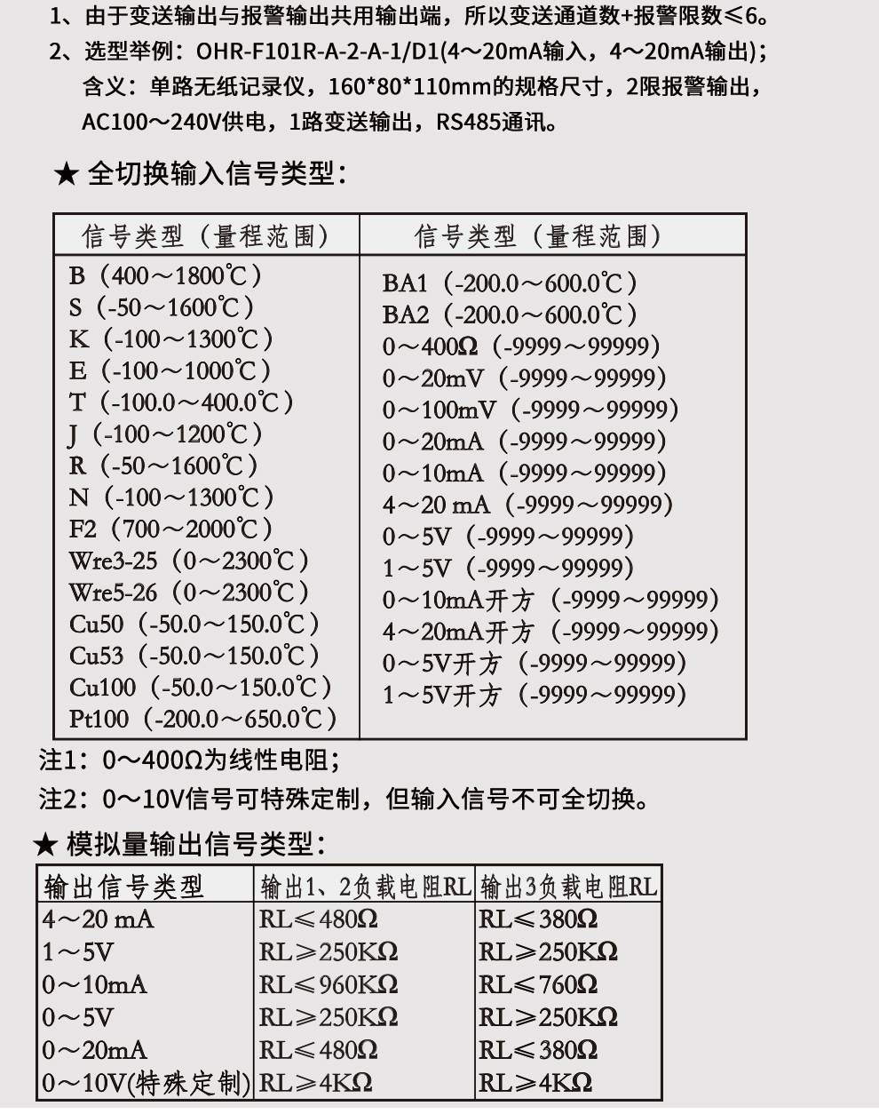 3、OHR-F100R系列無(wú)紙記錄儀(配套型)選型(鼠標(biāo)右鍵另存下載)