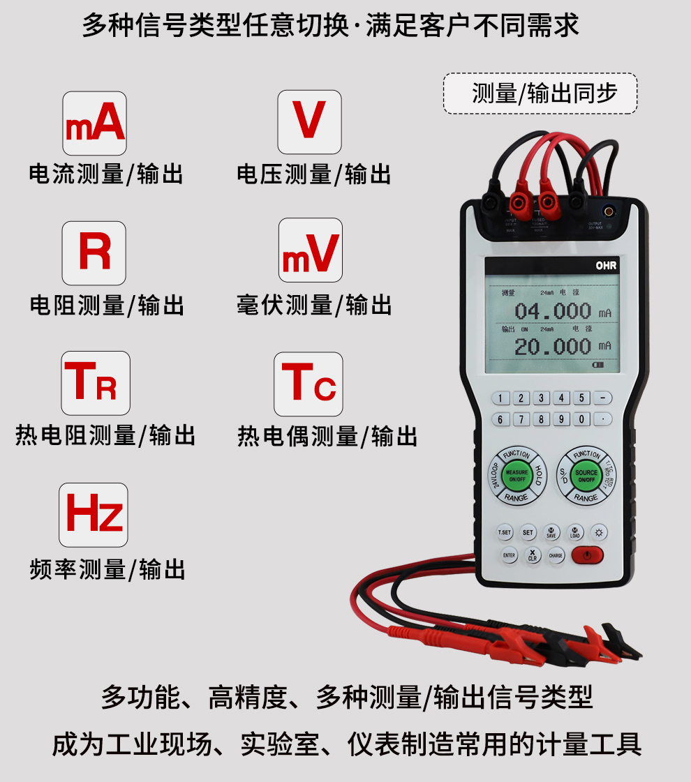 過程校驗儀是一種多功能、高精度的便攜式儀器,可用于校準、測試工業(yè)過程裝置及各種電氣設(shè)備,支持電流、電壓、電阻、頻率、熱電偶、熱電阻等多種信號類型,最高精度可達0.01%F.S,是工業(yè)現(xiàn)場、實驗室以及各類儀表制造商必備的計量測試工具。